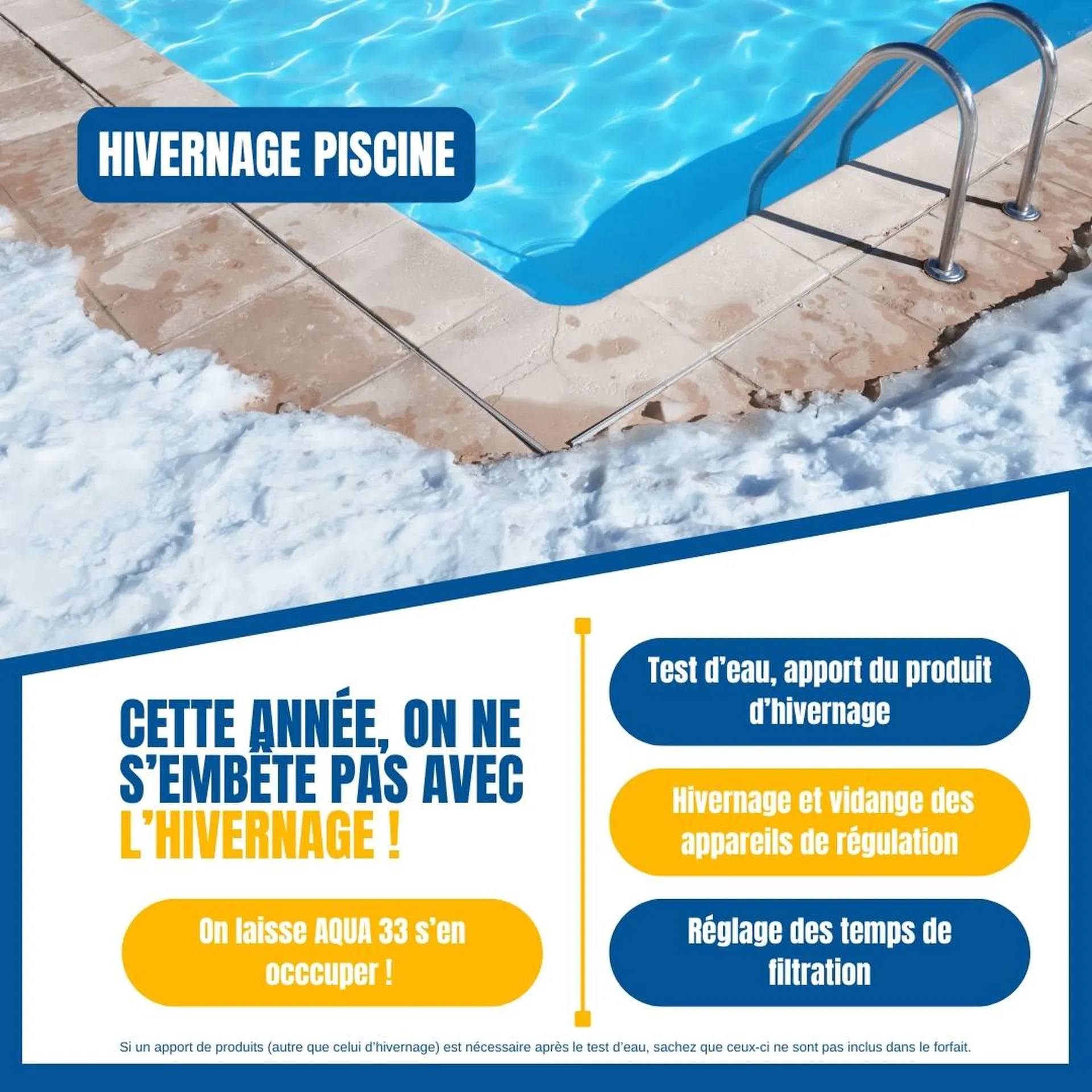 En choisissant Aqua 33 pour l’hivernage de votre piscine à Ambarès et Lagrave, vous bénéficiez de l’expertise de professionnels expérimentés. Que vous optiez pour notre contrat d’hivernage ou que vous préfériez acheter les produits nécessaires, nous sommes là pour vous accompagner. Vous trouverez dans notre magasin les meilleurs produits pour l’entretien de votre piscine, y compris des produits d'hivernage, ainsi que des services d'analyse d'eau pour garantir la qualité de votre installation.
