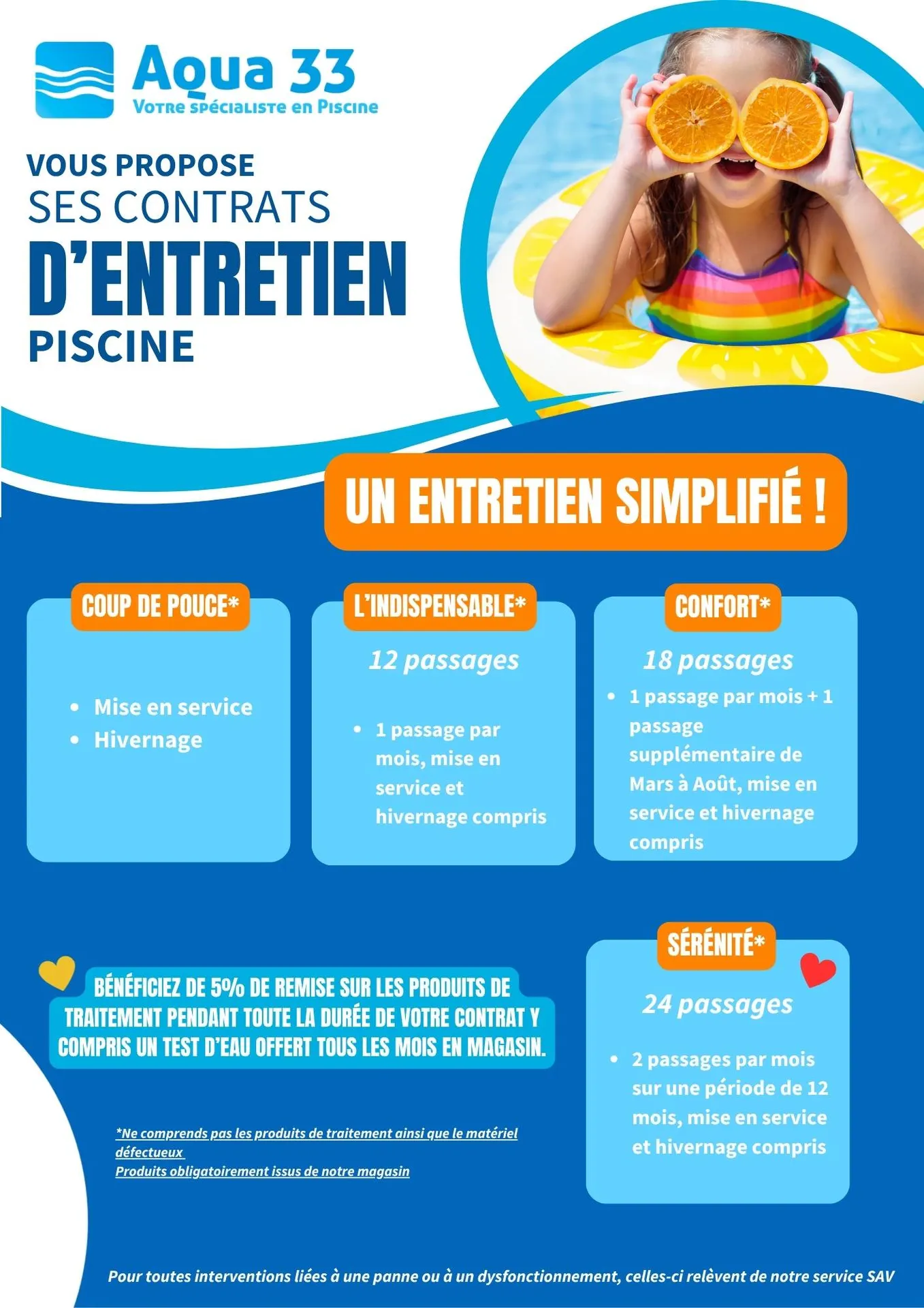 Aqua 33 votre professionnel en piscine à Ambarès et Lagrave près de Bordeaux, vous propose des forfaits adaptés pour l'entretien de vos piscines sur la Rive Droite.